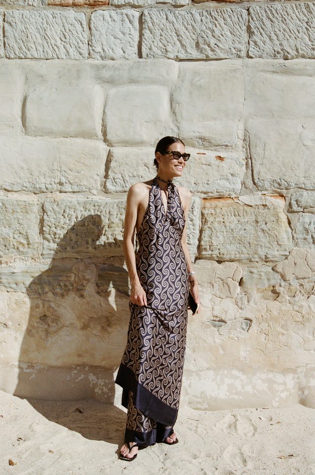 Bianca Beaman wears the Elidia Maxi Dress in Juanita Swirl.