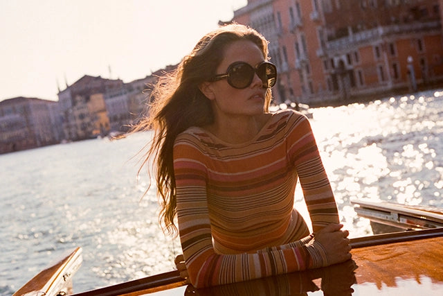 Rossana is wearing a size Extra Small and her measurements are Height: 5’11”, Bust: 30”, Waist: 22.8”, Hips: 35”.